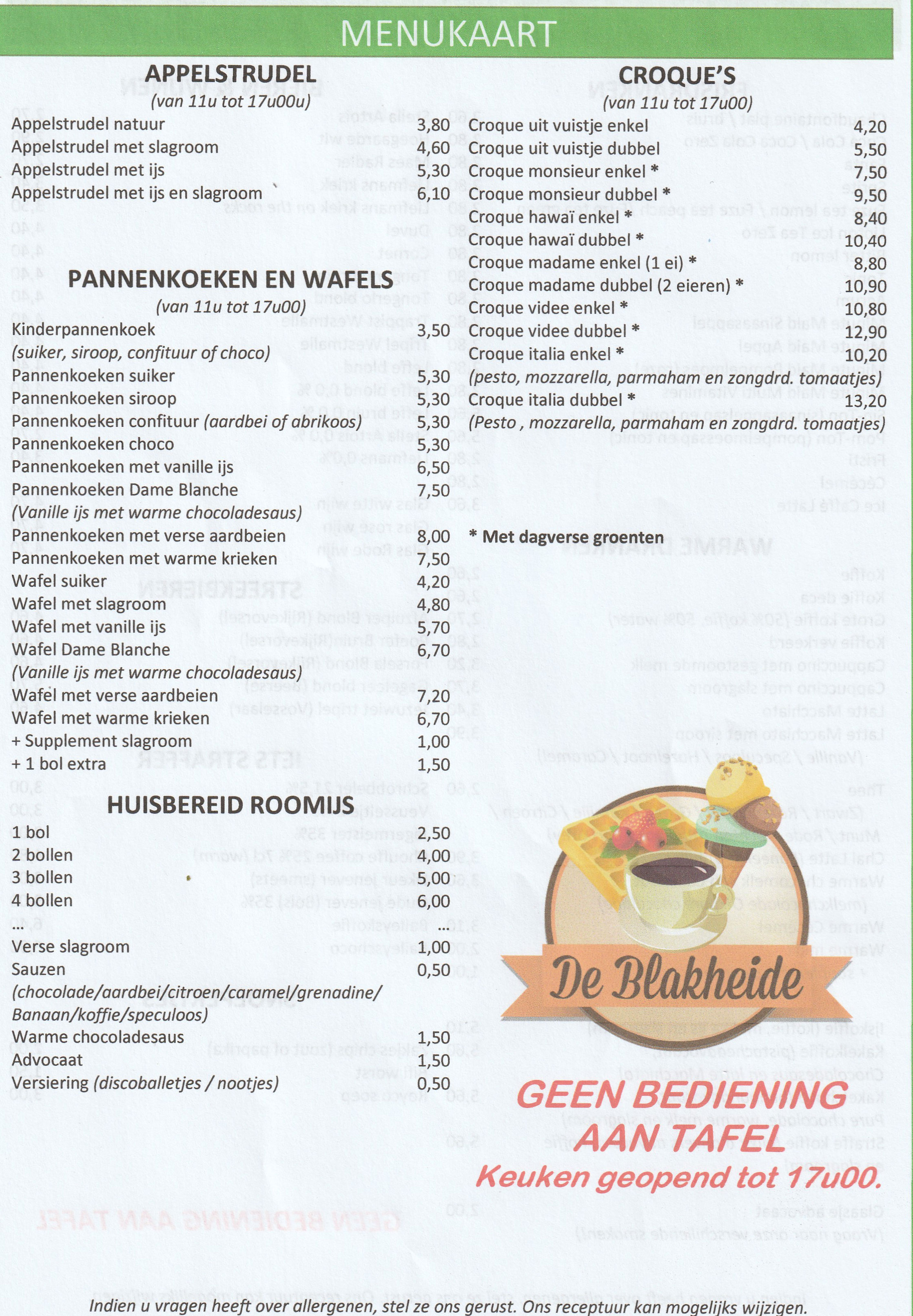 GEEN BEDIENING AAN TAFEL KEUKEN GEOPEND TOT 17.00 UUR